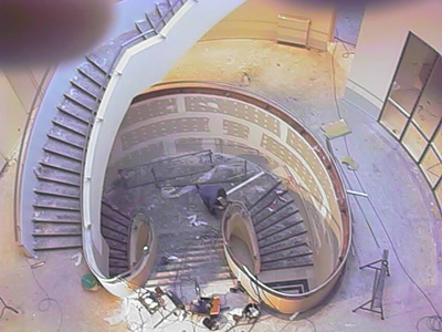 Montage in trappenhuis van kantorenpand aan de Keizergracht -