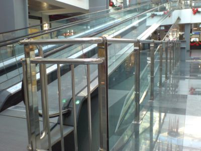 RVS trap met houten treden en leuningwerk geglaspareld.